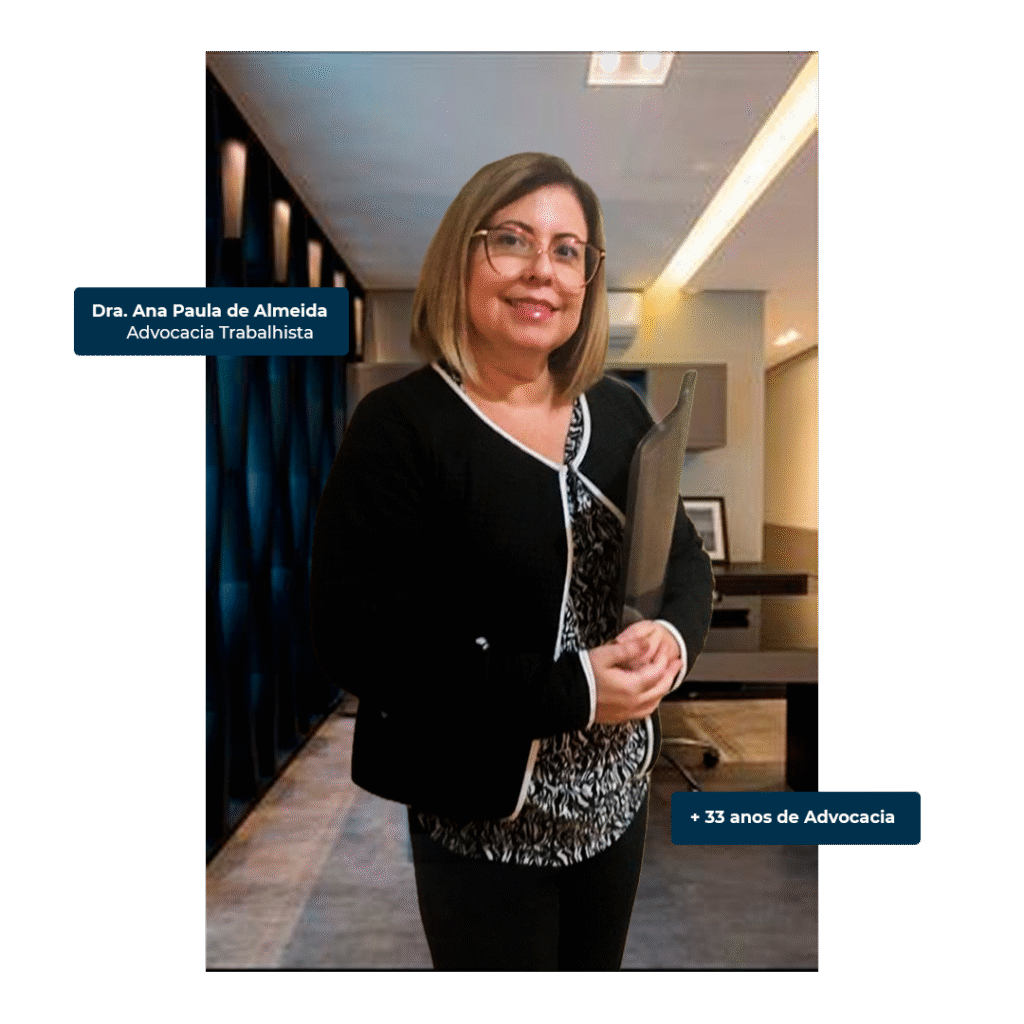 Com sólida trajetória construída ao longo de 33 anos de advocacia, a Dra. Ana Paula de Almeida é referência na defesa dos *direitos trabalhistas dos empregados.